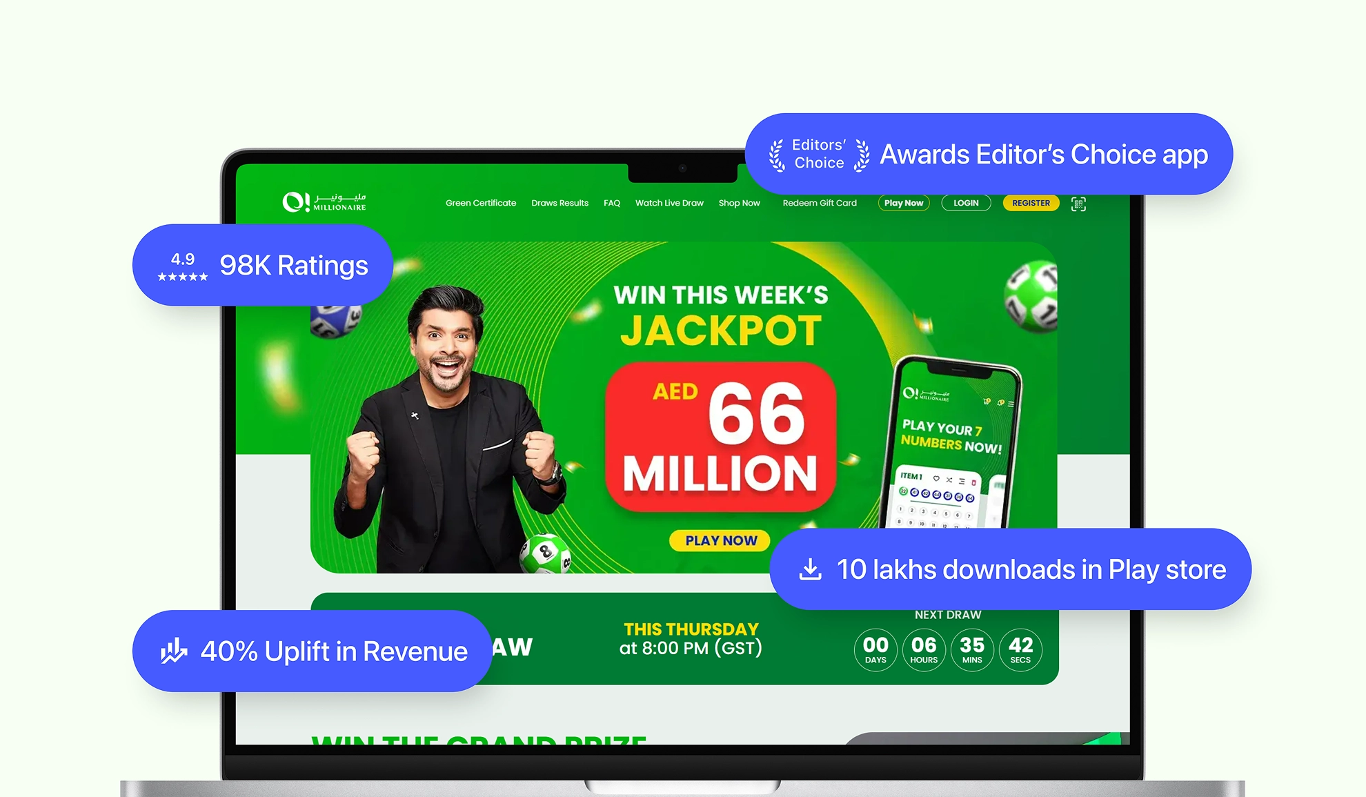 A millionaire aimed to create a digital platform for a unique “Green Draw” experience, surpassing standard online lotteries. The goal was to balance user excitement, transparency in prize draws, and a sustainability mission supporting initiatives like tree planting. The platform needed to build trust and ensure intuitive participation globally.